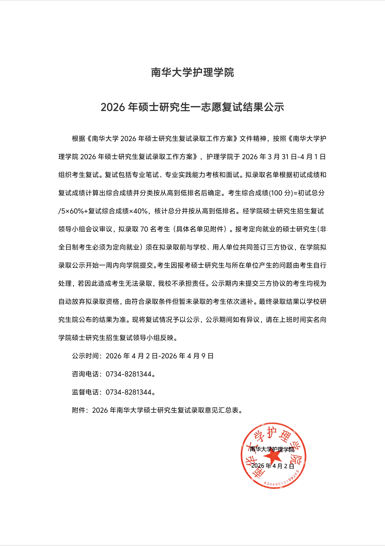 2138CC太阳集团2026年硕士研究生一志愿复试结果公示