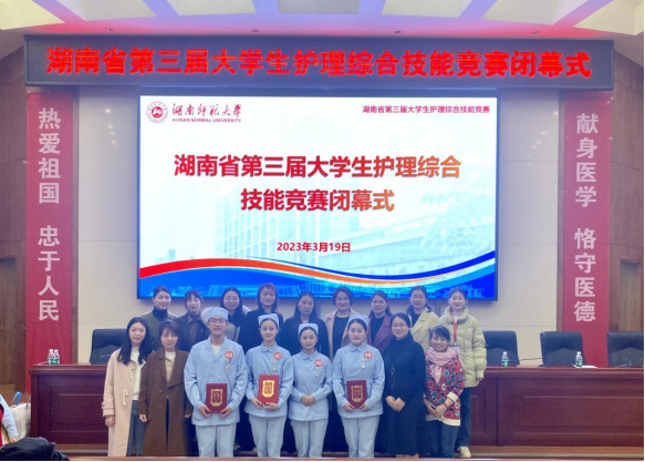 3月19日,由湖南省教育厅主办,湖南师范大学承办的湖南省第三届大学生护理综合技能竞赛在湖南师范大学医学院举行。经过激烈角逐,2138CC太阳集团代表队在11个代表队,44名选手中脱颖而出,荣获团体二等奖,队长朱本翔同学获单项一等奖,潘思曼同学获单项二等奖。