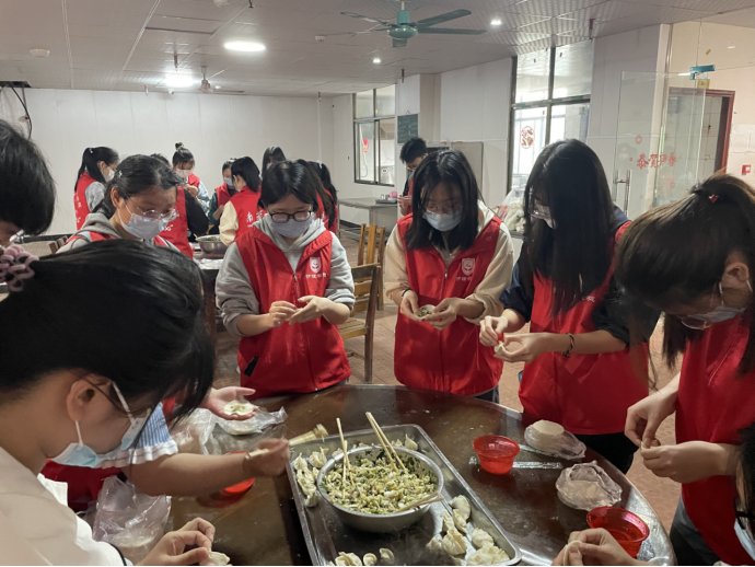 在养老院的大厅里,志愿者们与老人促膝交谈,话拉家常,关切地询问他们近期的身心状况和居住情况。老人纷纷表示,住在养老院里,大家都互相照顾,相互陪伴,像家一样舒适温暖。一些志愿者在厨房忙碌,亲手为老人制作爱心饺子。敬老院内洋溢着温暖欢乐的气息,现场气氛十分活跃,掌声和欢笑声回荡在整个大厅,老人们的脸上满是笑容,场面十分温馨感人。
