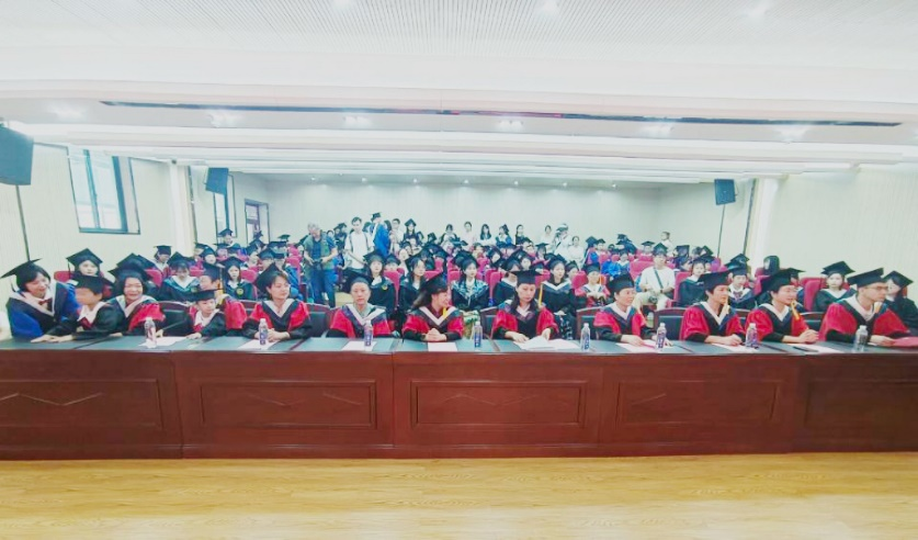 副院长曾谷清宣读学位授予文件,学院党委副书记王祥宣读优秀毕业生表彰文件。授学位嘉宾依次为毕业生援正流苏、颁发学位证和毕业证,赠送毕业生纪念品。