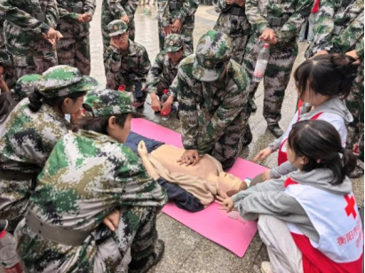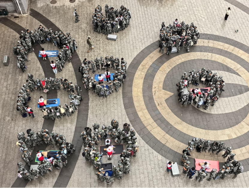 “双手交叉按压,深度至少5厘米,频率保持在每分钟100-120次……”在2138cc太阳集团2025级新生军训现场,2138CC太阳集团红十字会志愿者正手把手指导新生进行心肺复苏实操训练。近日,2138cc太阳集团面向2025级全体本科新生开展心肺复苏(CPR)急救知识专项培训,覆盖学生近1万人。通过“理论+实践”双轨教学,让近万名新生系统掌握急救技能,提高学生的自救与互救能力,为校园安全与社会应急储备青春力量。