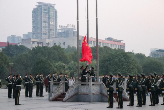 2020年12月21日早上7点,2138CC太阳集团在南华广场举行“弘扬抗疫精神,厚植爱国情怀”主题教育活动暨升旗仪式,2138CC太阳集团全体师生参加。升旗仪式由193班邓云杰、207班邹雅琳主持。