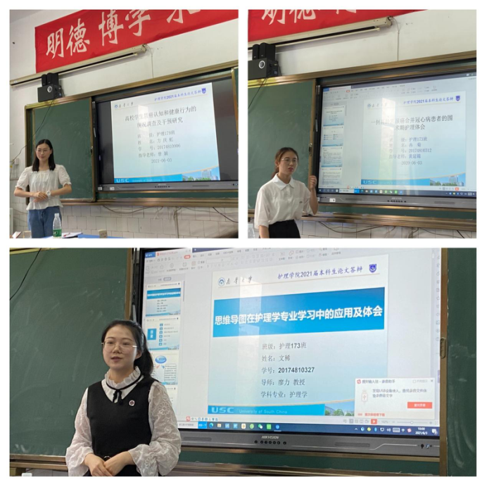 2021年6月3日上午10:00,涉外人文护理学教研室于2138CC太阳集团研究生教室举行了2021届护理本科毕业生论文答辩会。2138CC太阳集团院长廖力指导此次答辩,涉外人文护理学教研室主任曾颖教授担任答辩组长,教研室全体教师担任答辩委员,肖俏老师担任答辩秘书,教研室2017级全体护理本科生参与本次论文答辩会。