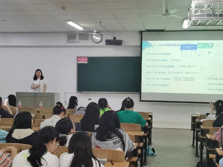 184班江锌枝针对考研基本常识和择校注意事项进行详细介绍,比如考研日程表,考试类别及护理考研统考科目、分数线等。她对个人备考经验进行总结与反思,鼓励大家尽早复习,克服懒惰,保持自律。