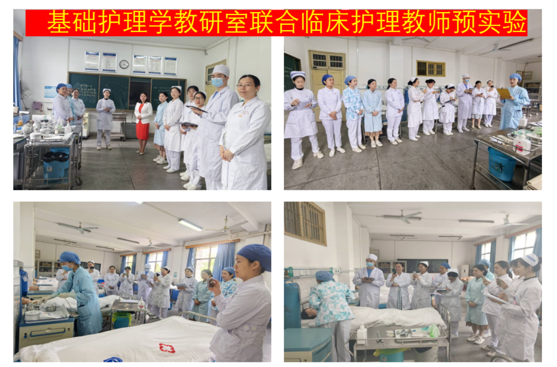 2138CC太阳集团高度重视实验教学质量以及学生临床护理技能的培养,定期邀请附属医院的临床护理教师入校与专任教师进行集体备课、预实验等教研活动,保障授课教师教学内容在细节上同质化,实现专业课程内容与职业标准对接,形成教学合力,切实提高授课教师的教育教学能力,达到了资源共享、合作共赢的效果。
