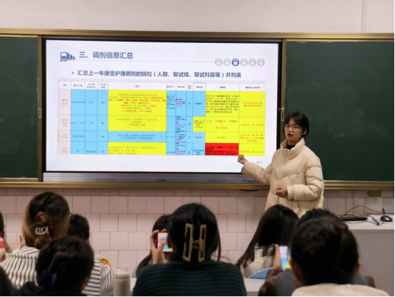 交流会上,副院长曾谷清结合自身经验,为同学们讲解了考研志愿填报与复试技巧。她强调,找好自己的定位是考研上岸的关键,鼓励同学们要充分了解自己的优势和兴趣,合理规划考研方向。
