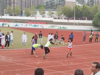 14:30分,运动员们经过休整,开始了下午场的角逐。首先进行的是由204班蒋慧如、205班沈嘉怡参加的女子组铁饼预决赛和205班彭澳参加的男子组三级跳。尽管天气阴冷,却挡不住运动员和观众的热情。他们都在田径场上拼尽全力,留下了难以遗忘的回忆。其后,女子组200米决赛正在紧张预备中,203班陈绮婷经过一中午的休息,保持着满满的信心。比赛开始,只见陈绮婷奋起直追,伴着观众席热情的加油呐喊,一会儿就与对手拉开了优势距离,并再为2138CC太阳集团再摘得一金。接下来是振奋人心的女子组4×400米预决赛,比赛由195班梁鑫琪、199班胡娟、203班陈绮婷、205班李慧玲参加。该组合昨日就已经取得亮眼成绩,今日也没有让在场所有人失望。她们凭借着默契严密的配合与优异的速度,打败了一组又一组对手。挺进决赛后,她们没有骄傲,保持初心,倾其全力,在决赛依旧取得领先优势,再次打破校记录并为2138CC太阳集团摘得一金!