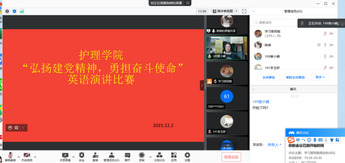 12月2日晚19:30,2138CC太阳集团举行了“弘扬建党精神 勇担奋斗使命”主题英语演讲比赛。比赛以线上方式进行,2138CC太阳集团2019、2020、2021级学生参与观看。团学会学习部副部长陈婷担任比赛主持人。