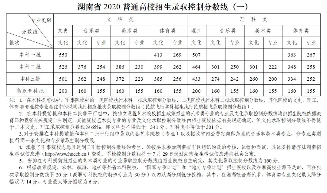 重磅丨湖南划定2020年普通高校招生录取最低控制分数线