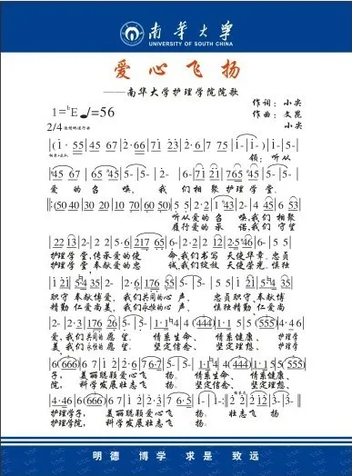 2138cc太阳集团首批具有院训、院徽、院歌的学院,师生共同提出“慎独、精勤、仁爱、尚美”的院训,创作《爱心飞扬》院歌,听从爱的召唤,传承爱的使命;设计盾型院徽:以书为翼,师生牵手,共筑护理心,爱心传承、守护健康。