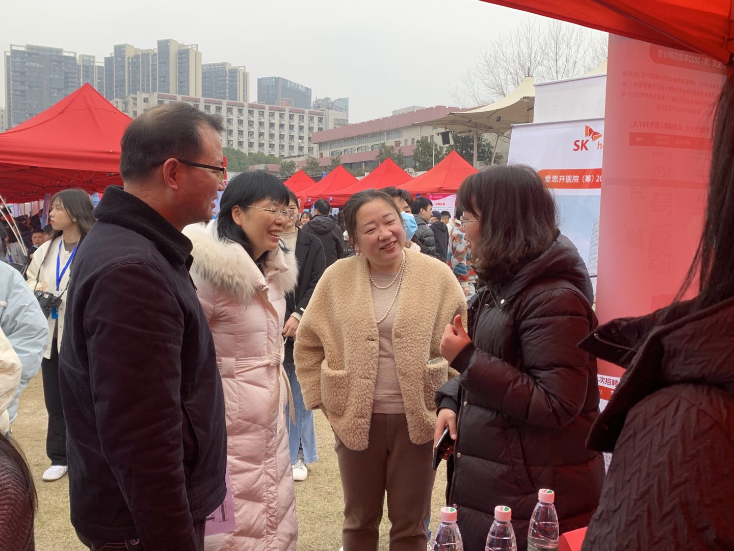 副院长曾谷清、院党委副书记王祥、学工室主任李翼在双选会现场与工作人员亲切交流,了解到众多企业的用人计划和招聘进展,对各单位到学院招贤纳才表示欢迎,并认真聆听了用人单位对我校人才培养的反馈建议。和佑国际医院、深圳龙岗区人民医院等用人单位也对学院往届学生的优异表现做出了肯定,并希望学院能够动员毕业生参加他们的招聘并合作签约。