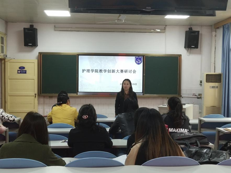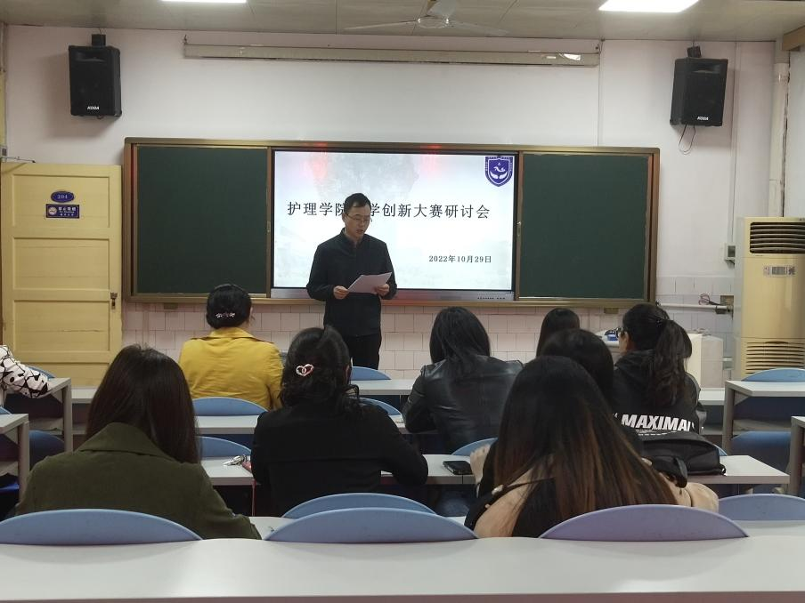 10月29日上午,为充分发挥“全国高校教师教学创新大赛”获奖成果的示范带动作用,进一步提升我院教师教学水平和育人能力,加强教师对教学创新大赛的重视程度,打造护理专业金师金课,2138CC太阳集团组织教师线上参加全国教学创新大赛实战经典案例分享专题会议暨2138CC太阳集团教学创新大赛研讨会。会议在学院学术报告厅举行。院长李忠玉出席会议,院长助理吴飞主持。