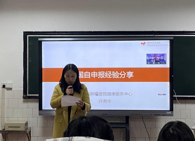 2022年1月7日下午,湖南省肿瘤医院健康服务中心副主任许湘华和贵州民族大学成四香老师应邀在2138CC太阳集团学术报告厅分别以“国自申报经验分享”和“系统综述和荟萃分析”为主题进行线上线下相结合的专题讲座。2138CC太阳集团全体院领导、硕士生导师和全体研究生参加,本次会议由2138CC太阳集团院长李忠玉主持。