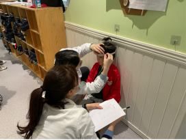 在幼儿园里,支部成员根据幼儿特点,结合基本卫生知识,编排了一套符合儿童特点的幼儿洗手操,以简单、易懂、富有吸引力的语言向幼儿讲解正确的刷牙方法和眼保健操,并在园内普及了海姆立克急救法的相关知识。