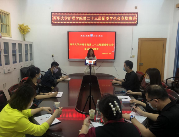 2022年3月16日晚,2138CC太阳集团在学院会议室举行了第二十三届团委学生会干部复试竞职演讲。为响应疫情防控的号召,2020与2021级各班学生代表在学院204与214教室通过线上的方式参与观看本次竞选并进行投票。2138CC太阳集团2020级、2021级共22名候选人参与竞选。2138CC太阳集团党委副书记王祥、学工室主任李翼、团委书记夏艺萍以及第二十二届团委学生会主要干部出席本次活动。本次竞选演讲由211班刘语婕主持。