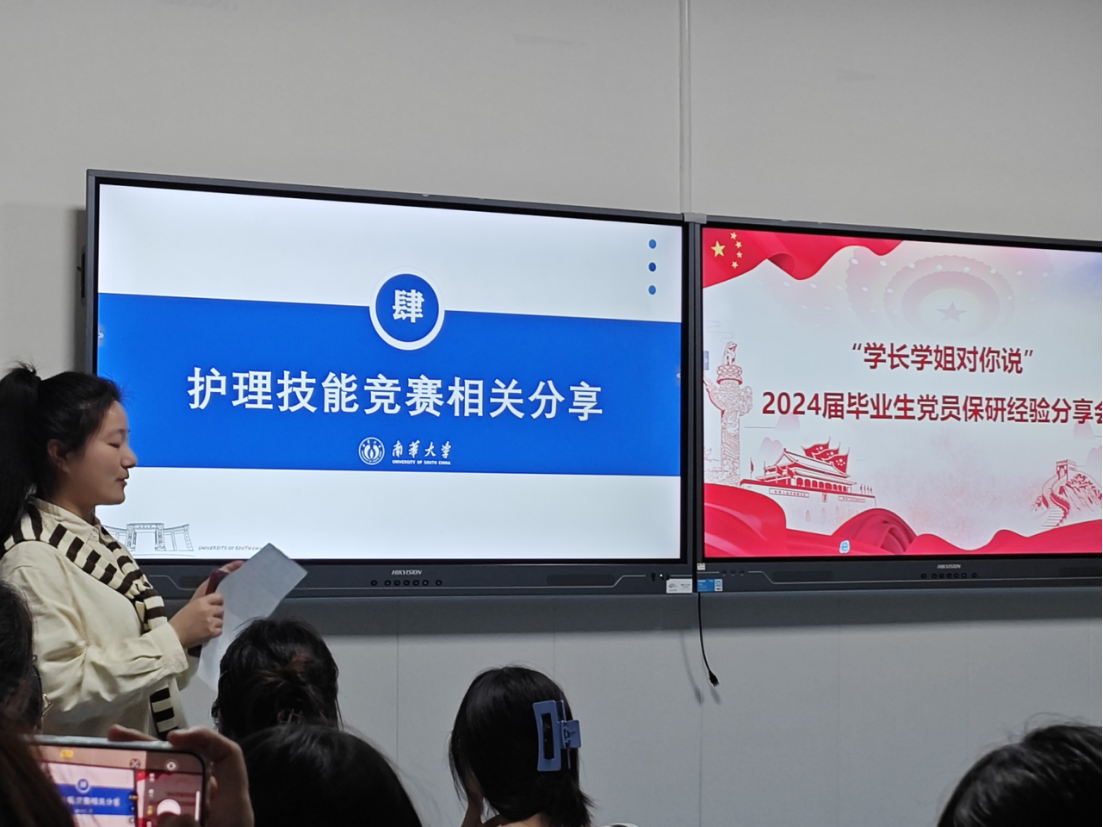 郑海欣、罗美琴、曾祖钥3名同学主要对护理技术技能竞赛的比赛内容、参赛优缺点等进行了阐述,强调一定要提前做好时间规划,能够接受任务繁重、训练枯燥的缺点,但也能提升自身的个人形象气质和专业能力,获得特等奖可为保研考核加分。